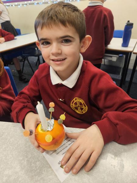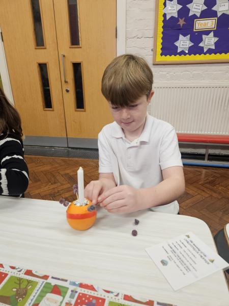 Year 3 learned about how Christingles were used to celebrate Jesus as the Light of the World. Mr and Mrs Corbett prepared all the items needed to make a Christingle for the whole school. Year 3 enjoyed making their Christingles ad were able to take them home to light.