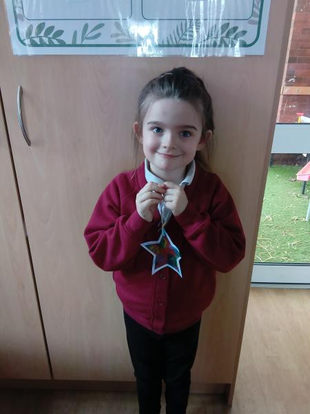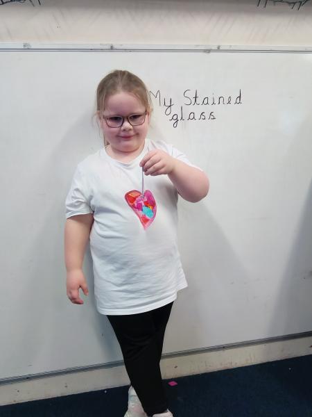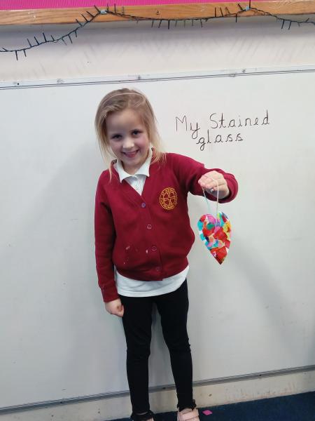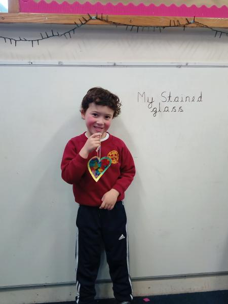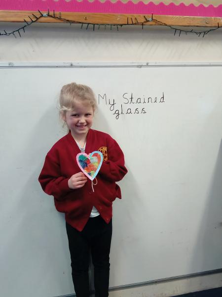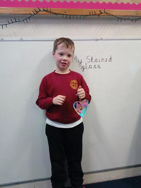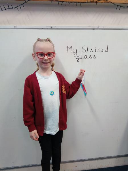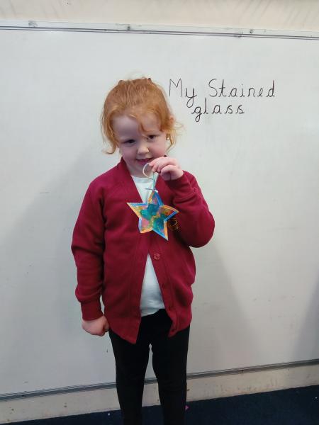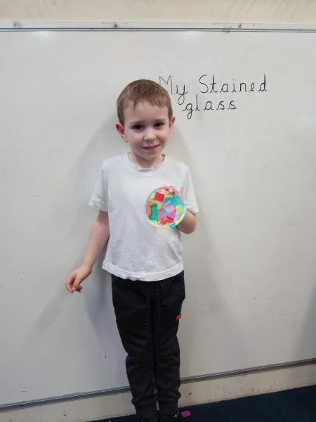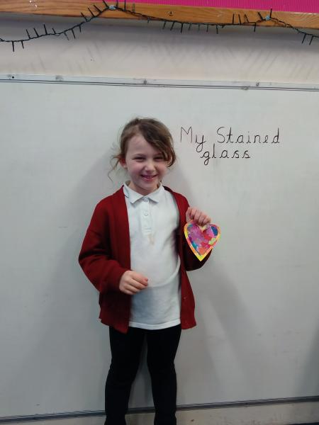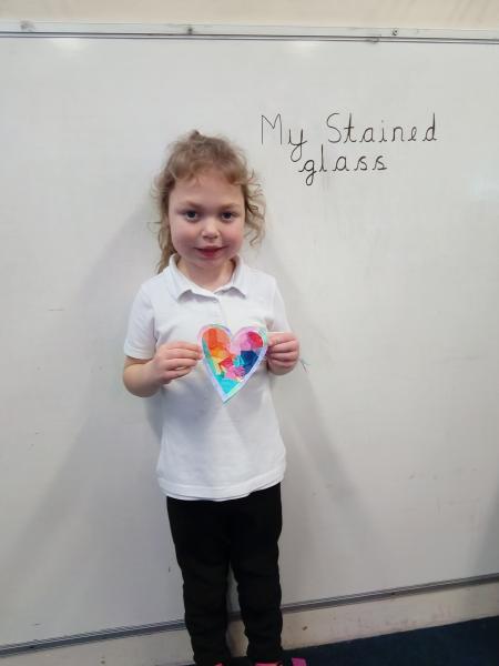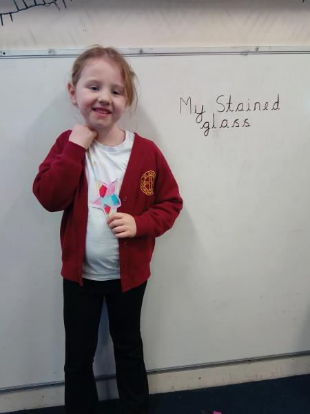 In Art we looked at stained glass windows. We used tissue paper to create our own stained glass.